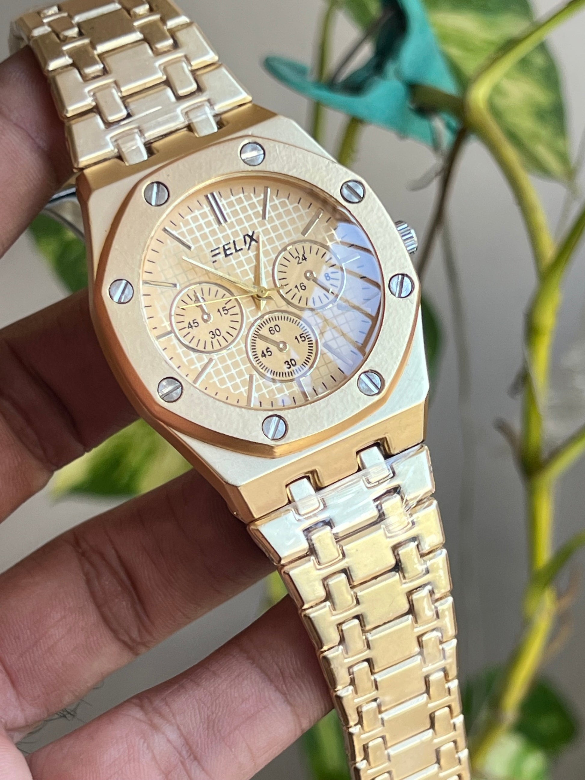 Gold Plated Stainless Steel Straps Classic Analog Watch For Men