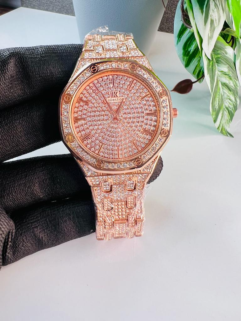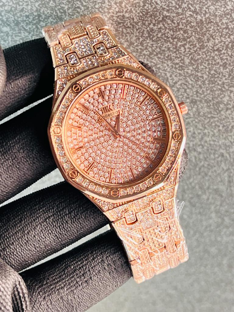 Rose Gold Plated Stone Embedded Luxurious Analog Watch For Men
