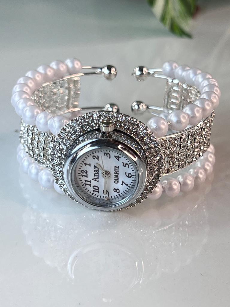 White Round Dial Stone Embedded Bracelet Style Watch For Women