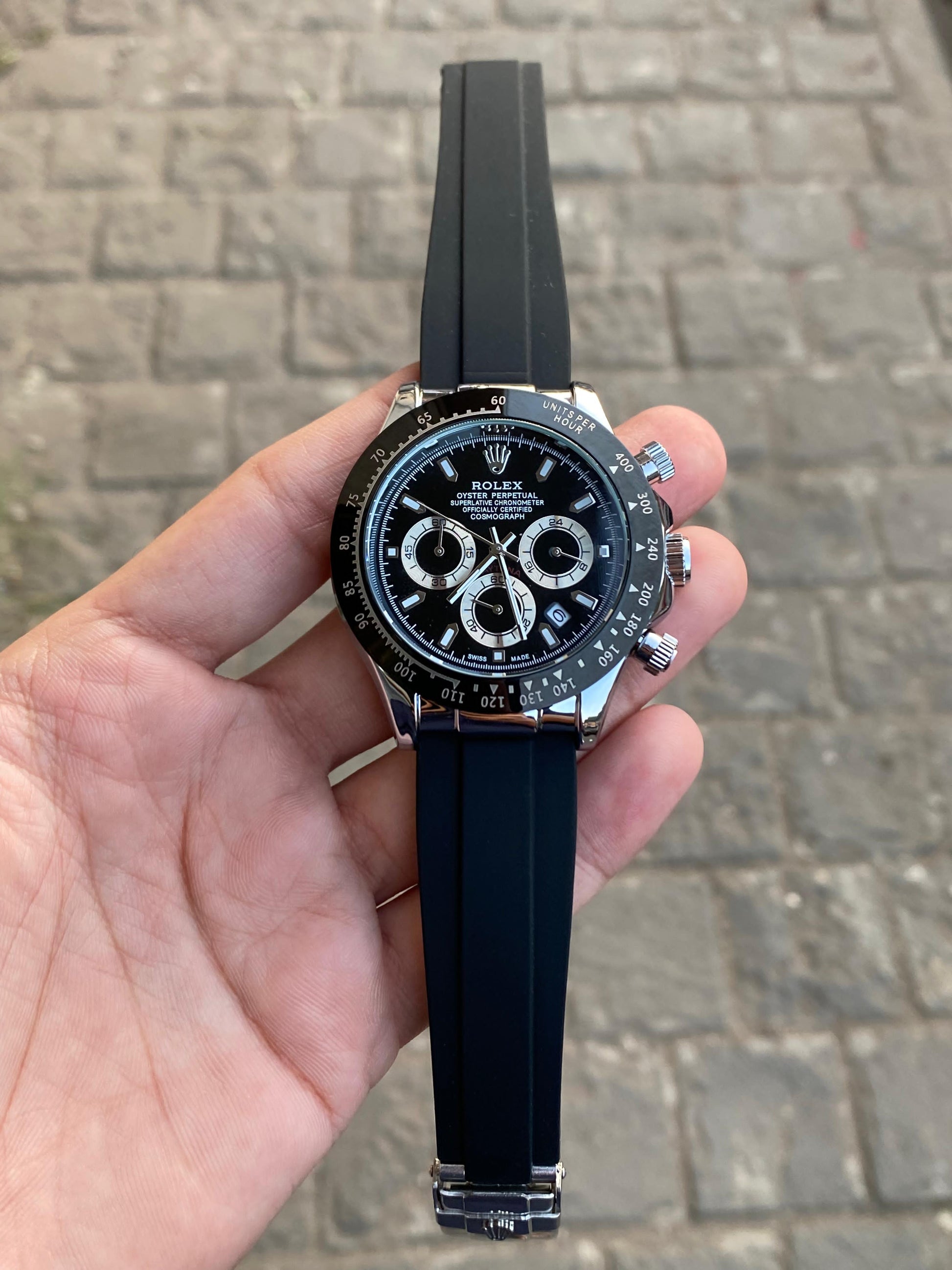 Black Dial Silver Case Silicon Strap Stylish Watch For Men