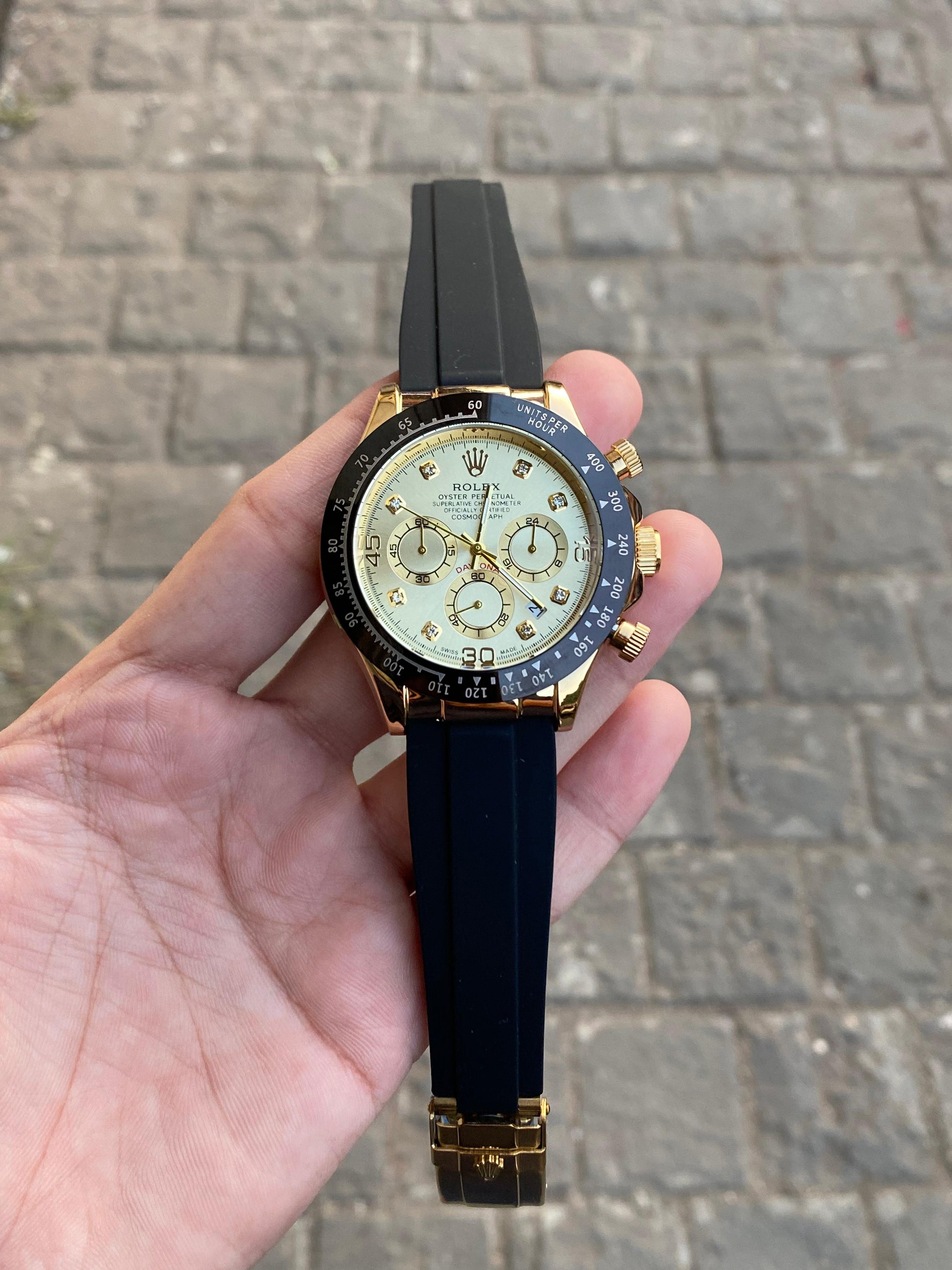 White Dial Gold Case Silicon Strap Stylish Watch For Men